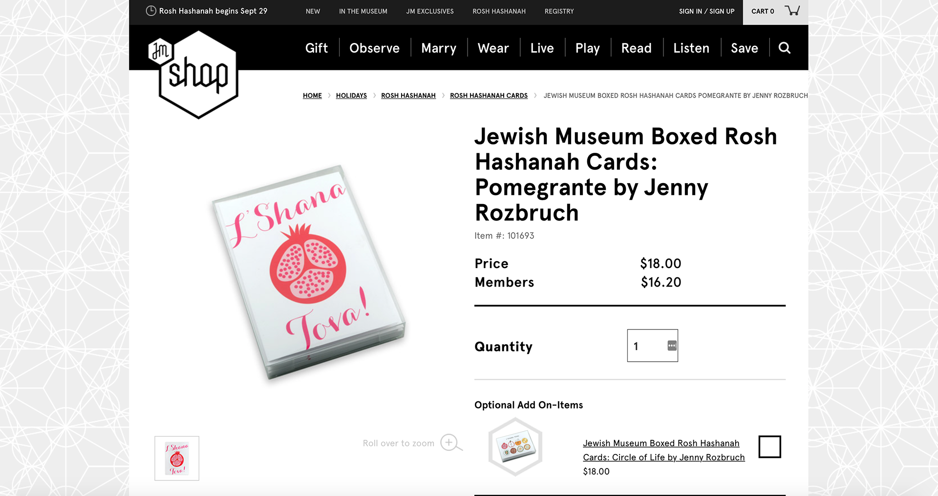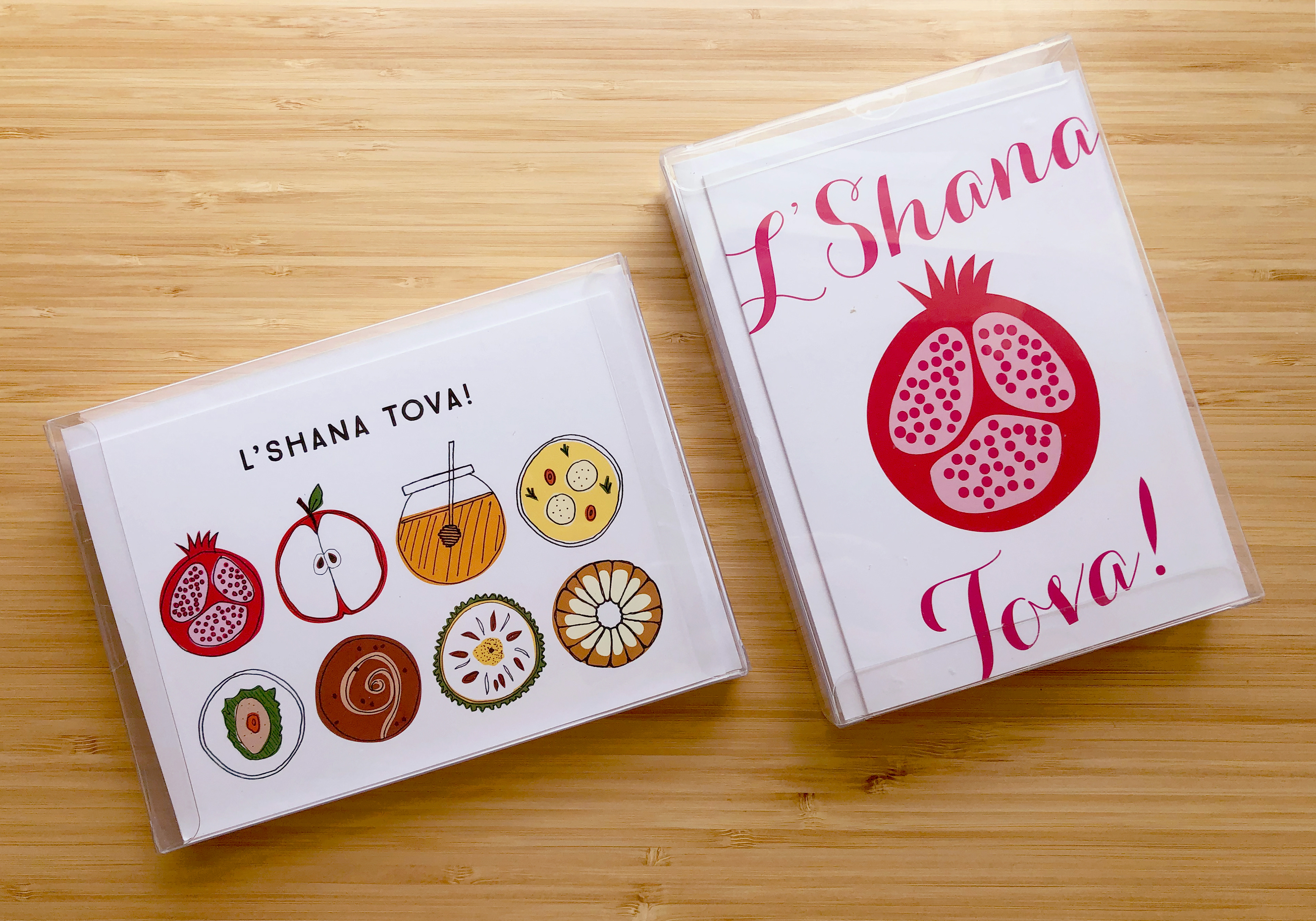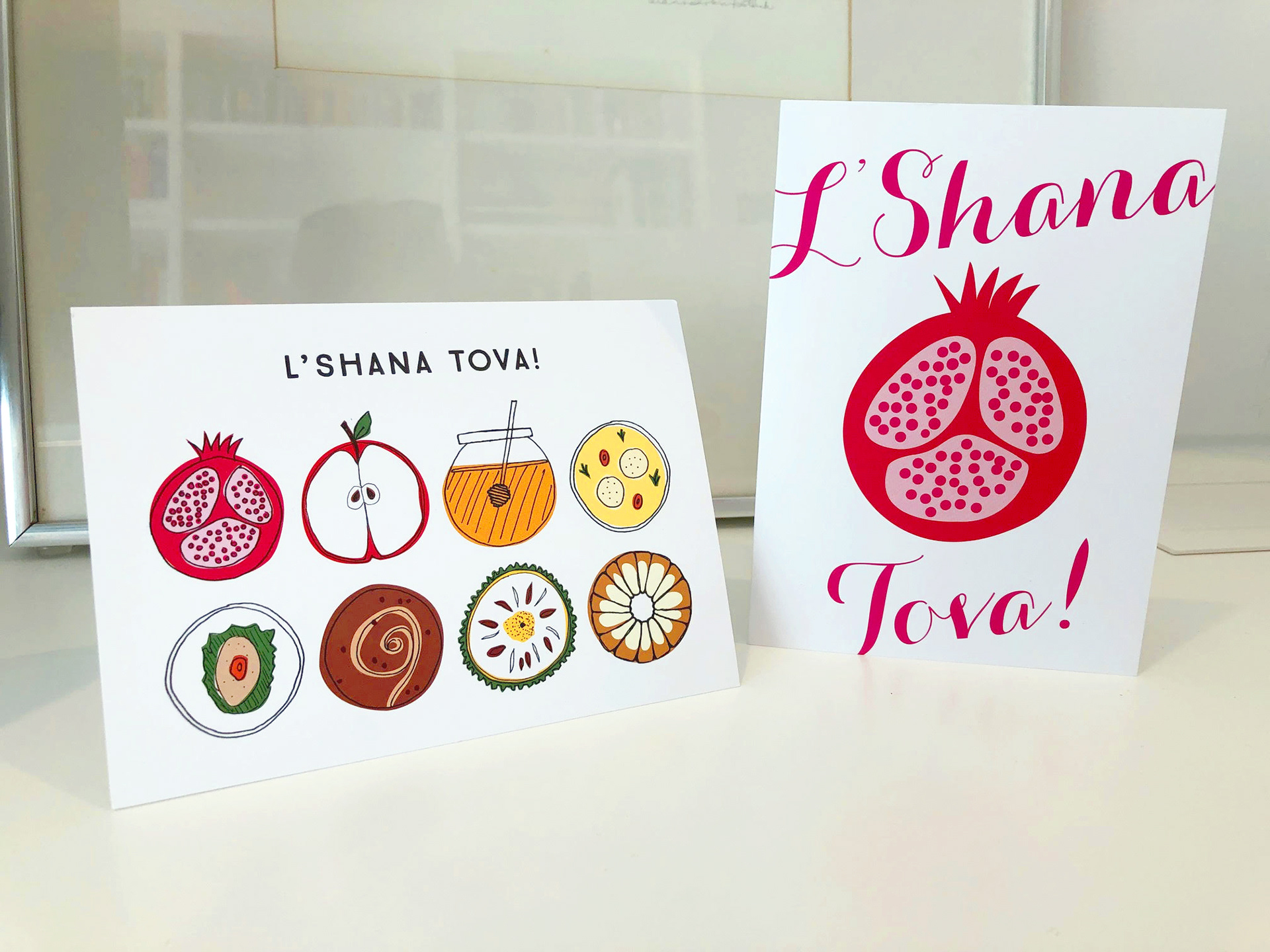 Rosh Hashanah cards that I designed exclusively for the Jewish Museum in Manhattan. They are currently sold as box sets at the Jewish Museum Shop and online. The “Circle of Life” card pays homage to the traditional foods served during Rosh Hashanah, exploring their naturally round shapes as a reflection of the circle of life renewing each year. The "Pomegranate" card celebrates a sweet & bright new year through a bright pink illustration of a pomegranate, a popular Rosh Hashanah food that symbolizes fruitfulness and abundance. Circle of Life card: (Inside Greeting: "As the circle of life continues, wishing you a sweet new year ahead.") Pomegranate Card: (Inside Greeting: Wishing you a happy, healthy & sweet new year.")