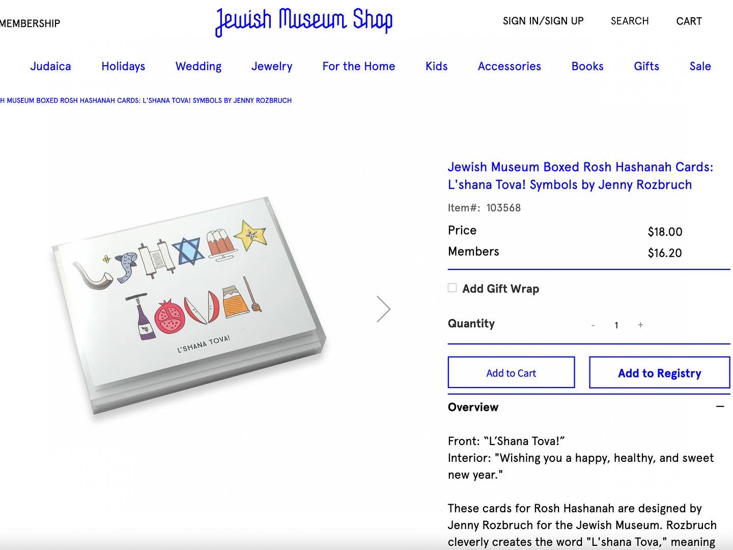 Rosh Hashanah cards designed exclusively for the Jewish Museum in Manhattan. They are currently sold as box sets at the Jewish Museum Shop and online.