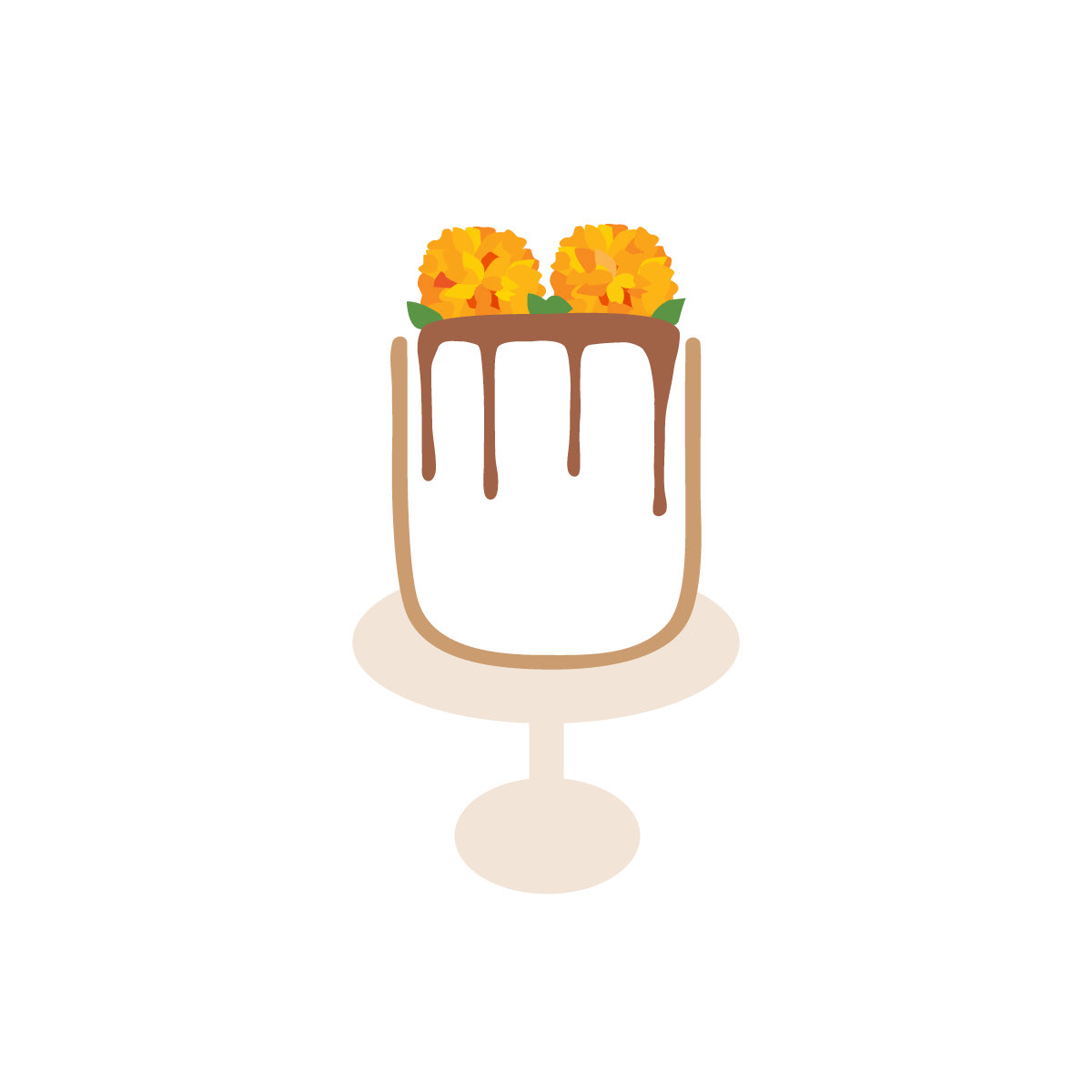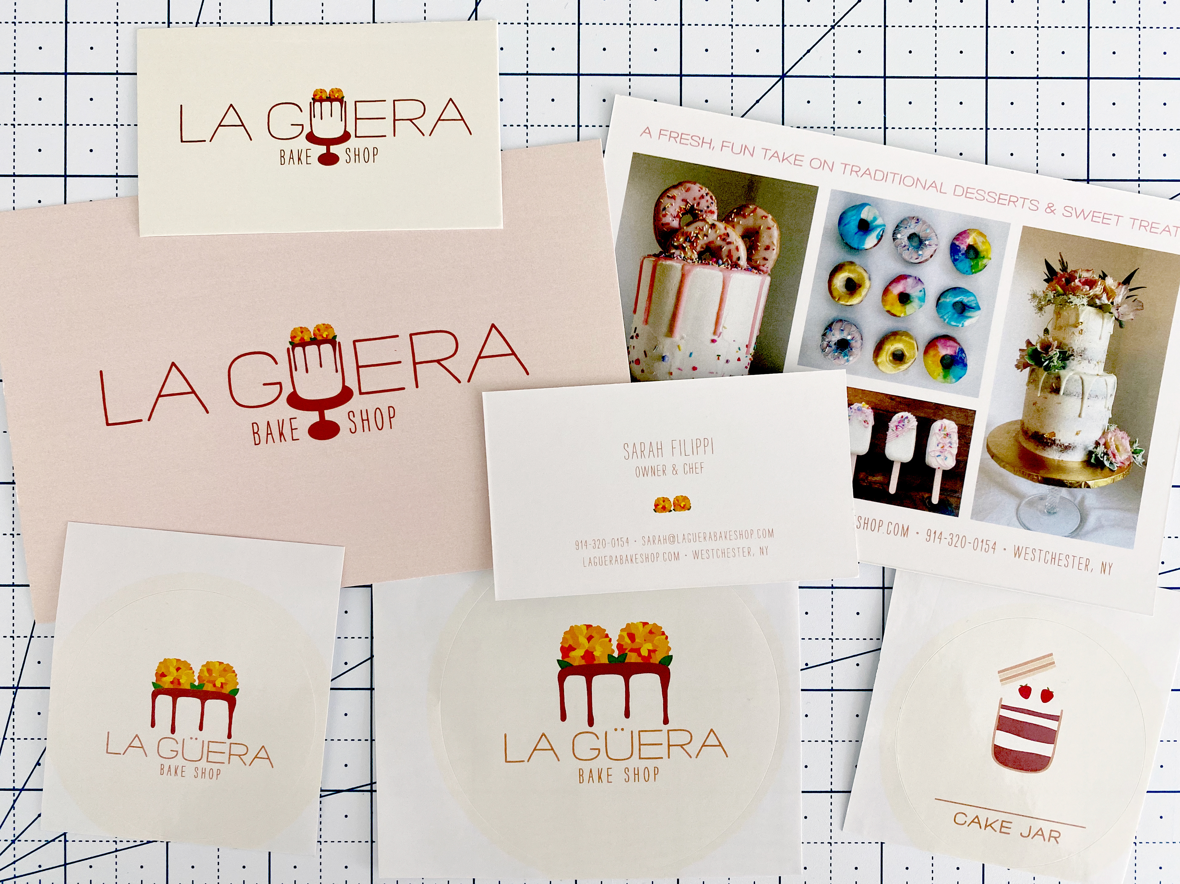 As you can see, I had a lot of fun playing with the shape of the "U" and umlaut in the name to transform into the client's signature drip cake with two Marigolds on top. (La Guera's desserts have a strong Mexican influence with a modern twist –– the Marigold is a symbolic flower used on Dia de los Muertos or "Day of the Dead.") And I had even more fun finding a way to turn this typographic shape-play into a system for the rest of her dessert menu. What a fortuitous union of letterforms and sweets!