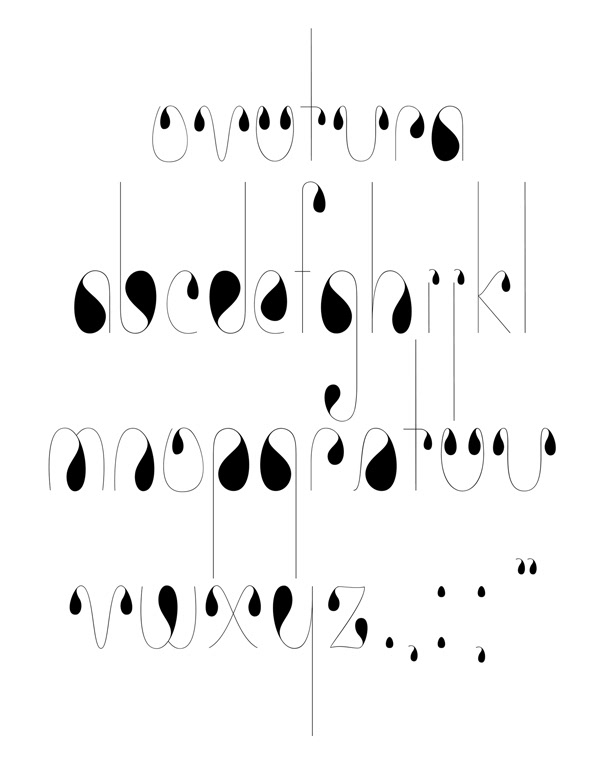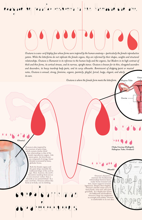 Ovutura is a display typeface whose letterforms are inspired by the lyrical shapes in the female reproductive system – particularly those of the ovaries and Fallopian tubes.