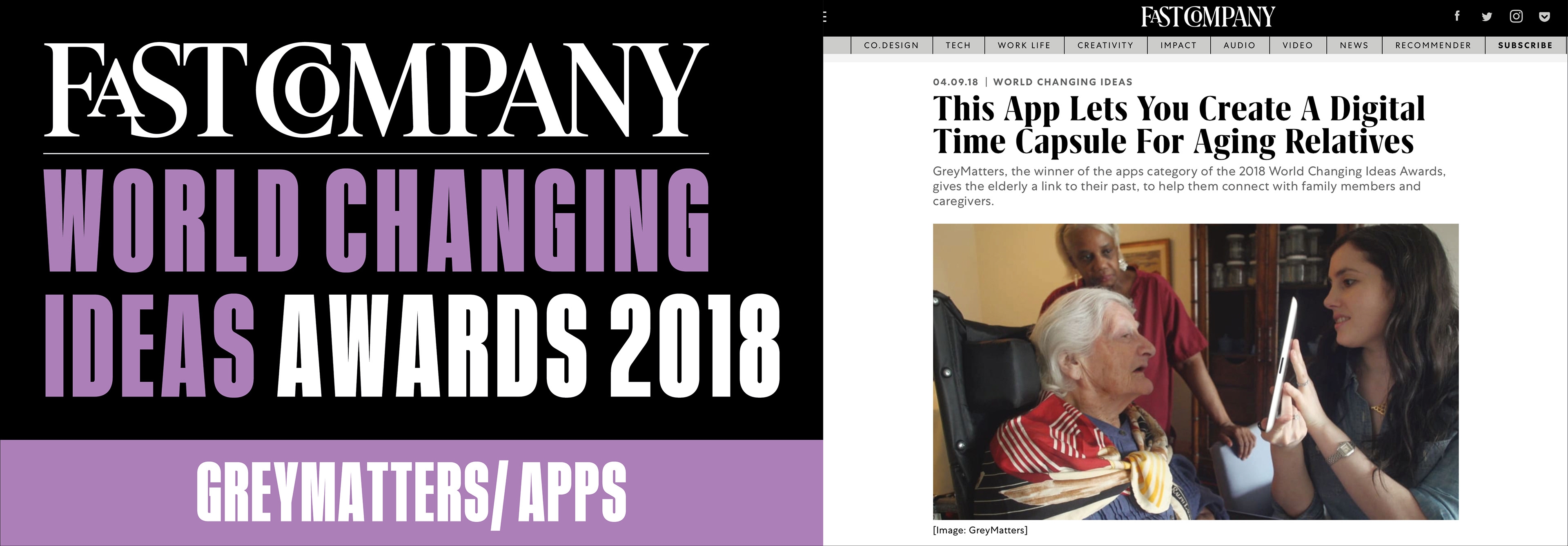 GreyMatters chosen as Winner of Fast Company's 2018 World Changing Ideas Awards in the Apps Category!