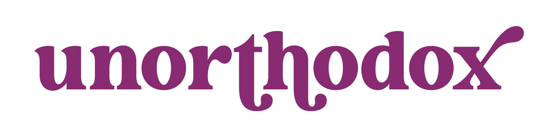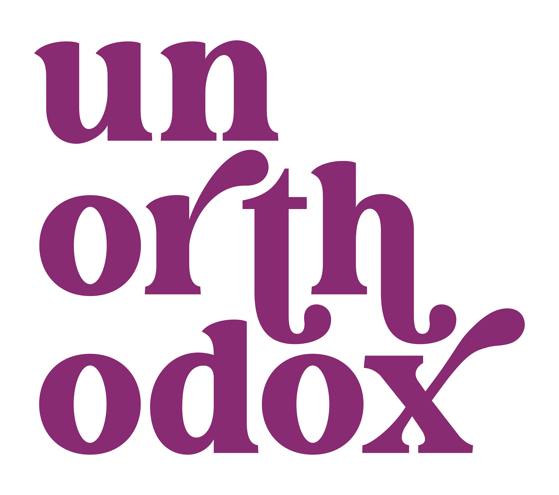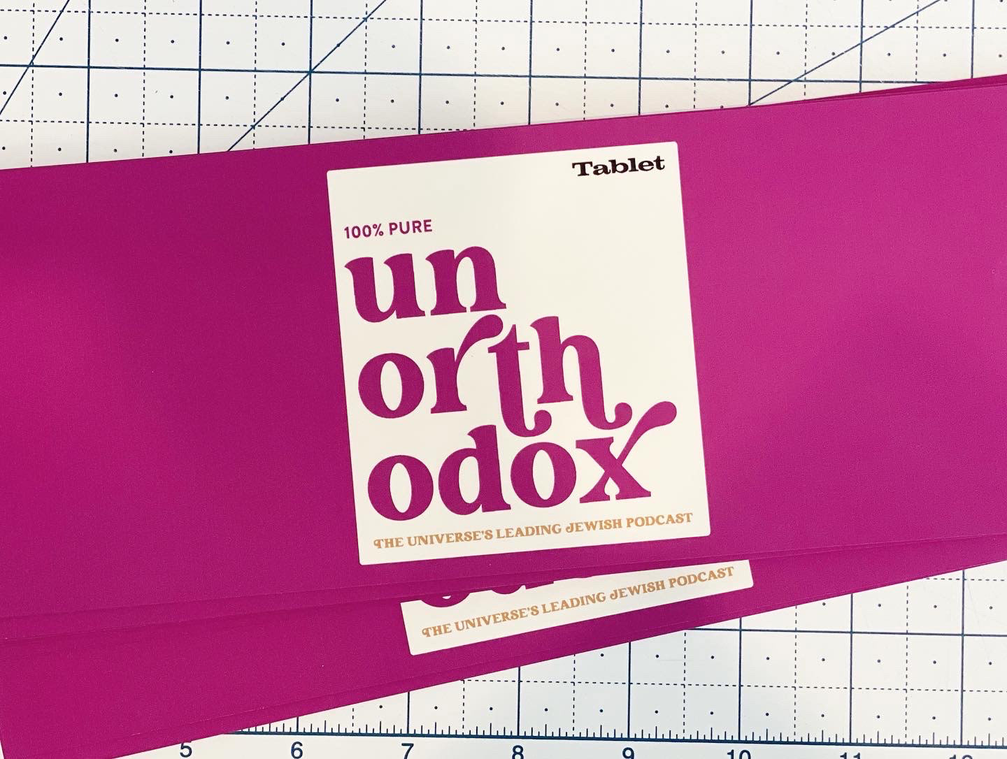 Logo, branding & merchandise design for the "Universe's Leading Jewish Podcast" from Tablet Studios. Hosted by Mark Oppenheimer, Stephanie Butnick, and Liel Leibovitz, Unorthodox brings you News of the Jews, interesting guests—one Jewish and one gentile—and so much more.